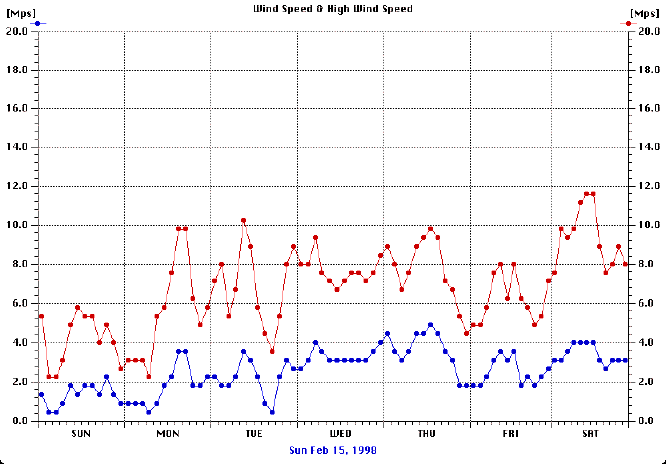 The wind as measured by Harald Brandt from Sunday up to 98-02-21,