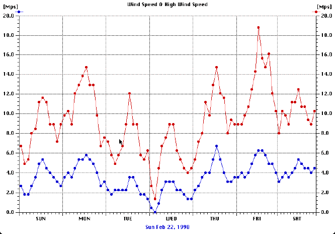 The wind as measured by Harald Brandt from Sunday up to 98-02-28,