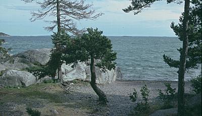 Nu blåste det SV 12-15 m/s! Det kan man absolut inte tro av bilden, men jag mätte faktiskt uppe på knallen bakom tallen, och där var det 12, och det blåste bra mycket mer när man kom ut på Mysingen (utanför ön i vänstra hörnet). När bilden togs kanske det hade hunnit mojna något. Jag körde 4.7 på Skate.